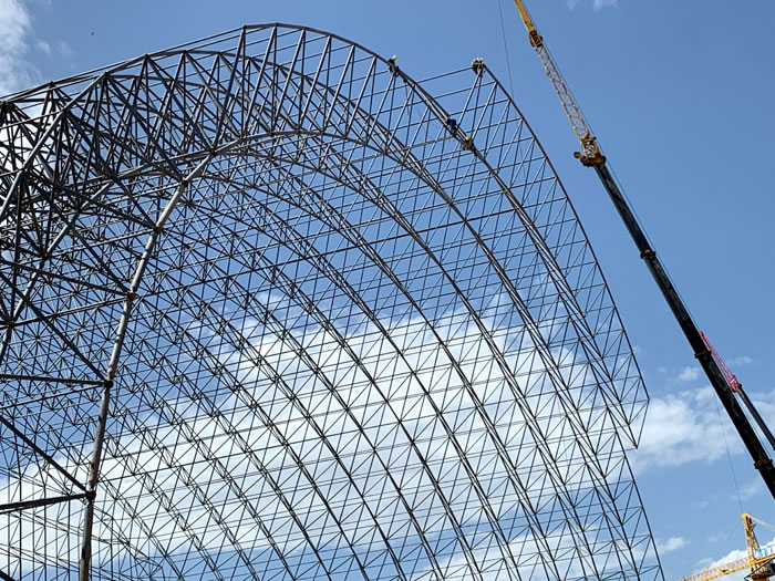 (2)网架加工前应对现场尺寸进行复测,确认无误后方可进行加工、安装;网架制作、运输、安装应遵守《空间网格结构技术规程》JGJ7-2010、《钢网架黄浦螺栓球节点》JG/T 10-2009、《钢网架黄浦螺栓球节点用高强度螺栓》 GB/T 16939-2016、《黄浦钢结构黄浦工程黄浦施工规范》 GB50755-2012、《黄浦钢结构黄浦工程施工质量验收标准》 GB50205-2020。